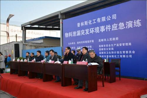 近日,由扬州市环境保护局、高邮市人民政府主办,高邮市环保局、湖西新区管委会、公安局、安监局、卫计委、气象局和消防大队承办的突发环境事件应急演练在扬州市普林斯化工有限公司顺利举办。省环境应急与事故调查中心毛朔焱副调研员、扬州市环保局副局长王和清、高邮市人民政府副市长张军和相关部门的主要领导参加。 此次演练由高邮市副市长张军担任总指挥,环保局局长张学雷担任副总指挥。此次演练主要模拟了生产车间E01(1,3-丙二醇单甲醚)R211釜底阀门发生泄露,企业第一时间发现并立即启动公司突发环境事件应急预案展开自救,在自救无效后企业负责人立即向有关部门联系,请求支援。市应急指挥小组启动《高邮市突发环境事件应急预案》,联合环保、公安、消防等部门开展现场联合应急处置行动,最终成功封堵了泄漏,避免了环境污染、人员伤亡和财产更大损失。 演练结束后,扬州市环保局副局长王和清做出点评。他肯定了此次演练在检验应急预案有效性和实用性的积极作用,同时也指出企业在生产中必须牢牢树立环保安全意识,防微杜渐,将隐患消除在萌芽状态。 通过这次演练,检验了政府与企业联动应急救援预案的可操作性和各相关职能部门的快速反应能力,提高了企业与政府各部门的应急响应和联动救援专业素质。