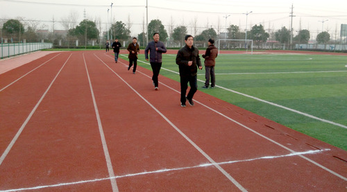 12月8日,鲁垛镇中心小学塑胶跑道上一场热火朝天的长跑比赛拉开了序幕。由鲁小工会组织的“迎新春”教职工长跑比赛开始了,该校40多名教职员工参加了比赛。