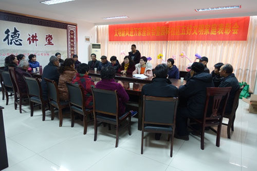 为深入开展社会主义价值体系的宣传教育,充分发挥优秀家庭典型在和谐社区建设中的积极作用,根据关于开展五好文明家庭创建评选活动的通知精神,进一步弘扬家庭美德、提升家庭文明、促进社会和谐,园林社区经过将一年的时间对辖区中的家庭调查、走访、公示,今天终于对二十三户家庭进行了表彰。表彰会现场,街道刘书记对二十三户家庭给予了高度评价,并鼓励他们继续发扬先锋带头作用,用自身的行为为和谐文明的新小区奉献力量!