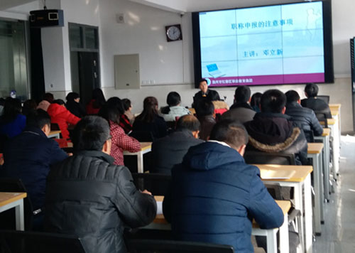 作为该校唯一的正高级讲师,邓立新校长率先开讲《职称申报注意事项》。邓校长结合自己副高评委的经历、正高申报的经验,在研读文件、整理材料、细化文字等方面做了详细的阐述。僧多粥少,职称常常是一线教师的“痛”。在追求“痛”的过程中,也能享受到成长的快乐。邓校长指出,申报职称要及早准备,要有顽强的斗志,好事多磨,才会好事成双。