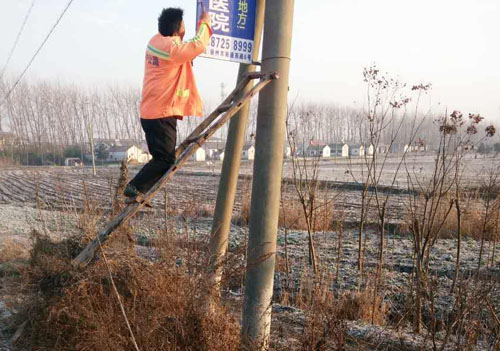 12月28日上午,宝应路政巡查人员在S264东大线巡查中发现公路路肩上有一块内容为“扬州京城皮肤病医院”的广告牌。路政人员一面根据广告牌上的电话联系当事人,告知其《公路法》第五十四条规定任何单位和个人未经县级以上地方人民政府交通主管部门批准,不得在公路用地范围内设置公路标志以外的其他标志。另一面组织人员对此广告牌进行了清除。