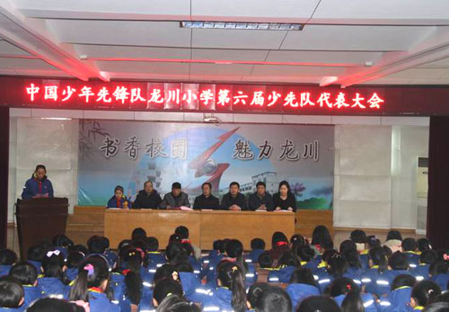 日前,龙川小学在多功能报告厅隆重召开第六届少先队员代表大会,该校17名大队委和270名少先队员代表参加会议,学校校长室、大队部、少工委全体成员出席了会议。
