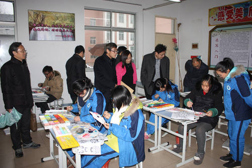 2017.1.5日下午,江苏省课程基地视导调研组领导专家一行4人,在市、区教育局相关领导陪同下来到公道中学,检查指导学校有关江苏省高中美术教育课程基地项目的建设情况。