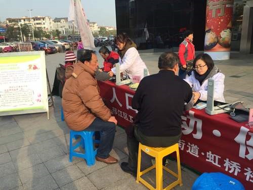 为促进流动人口基本公共服务均等化和流动人口社会融合。12日上午,双桥街道在虹桥社区所辖沃尔玛广场,开展 “2017新春流动人口卫生计生关怀关爱专项活动”。 扬州市卫计委基层指导处童欣处长、区卫计委高凤玲科长亲临现场参与活动。