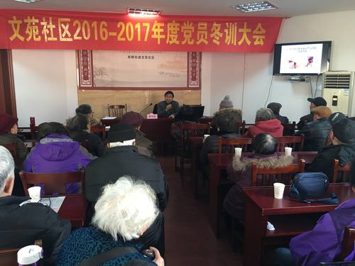 会议共有五项议程:一是文苑社区党委书记梅爱军作2016年社区工作总结,并分析了存在的问题和不足,提出了2017年社区工作要求和目标任务;二是由市委党校教授贾同跃作党的十八届六中全会精神解读;三是全体党员进行民主评议;四是观看反邪教、廉政宣传片;五是评选优秀共产党员。