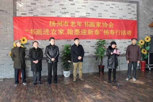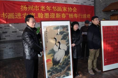 1月14日上午,扬州市老年书画家协会、市板桥书画院、市老干部书画研究会的十多位书画家们到杨寿镇开展“书画进农家、翰墨迎新春”免费写春联、送祝福活动。