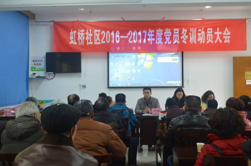 1月17日,在虹桥社区综合会议室内,80多名党员同志齐聚一堂,共同迎来新一年的党员冬训大会。会议由社区党总支书记范乃成主持,共分为三个议程。