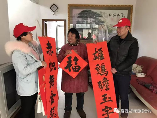 综合村村委会协同志愿者为村内伤残军人、老党员、弱势群体及孤寡老人送上节日的祝福,原汁原味的对联不仅承载了人们美好的希望和祝福,更代表了源远流长的传统节日,让下一代体会和延续优良的传统文化,在祝福村民新春快乐的同时营造出一个和谐、团结的良好氛围。