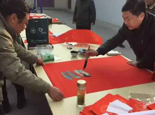 活动现场,书法家们挥毫泼墨、挥洒自如,为村民们书写着一副副春联,村民们拿到这写满祝福和美好憧憬的春联满是感谢。