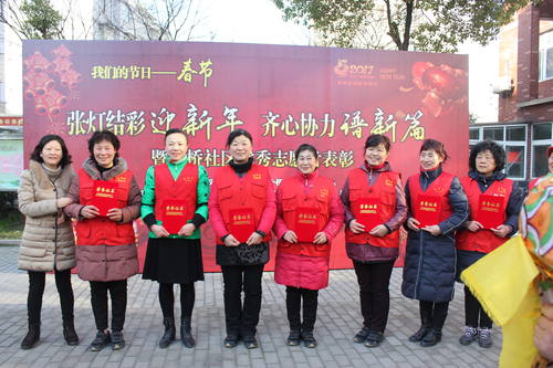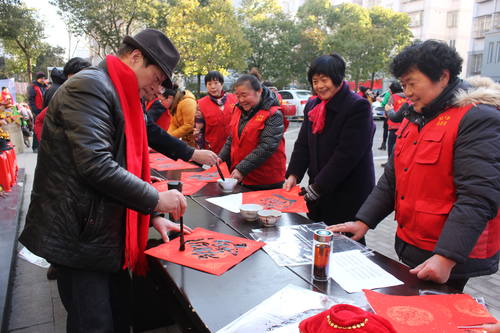 活动现场,红马甲义队们带来了《双龙贺春迎新年》、《鸡年贺春》、《欢欢喜喜过大年》等丰富多彩的节目,为社区居民送上了一道文化大餐,赢得阵阵掌声。扬州书画家的书法家们现场为大家书写春联。行书、隶书、草书……他们挥毫泼墨、笔走龙蛇。拿到充满浓浓年味的手写春联,社区居民欣喜不已。他们纷纷表示,新年写春联、送春联是弘扬中华民族优秀文化的传统活动,十分有意义。 此外,本次活动还对社区内的一批优秀志愿者进行了现场的表彰,卜桥社区还联合江苏银行、新力暖通慰问了辖区困难户代表,并送上节日的慰问。