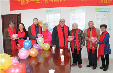 2月14日上午,石桥社区举办了一场以金婚老人过洋节“携手一生,相濡以沫”——我们的浪漫为主题的老年人情人节活动,社区5对金婚老年人欢度情人节,让这些年过花甲的老人时髦了一把。