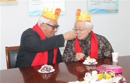 活动现场,除了大红的围巾和巧克力,还特意定制了蛋糕,祝贺老人们金婚之喜,老人们吃在嘴里甜在心理,激动的说:活到七十多岁,从未过过情人节,今天真是浪漫了一回。