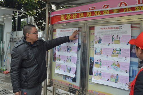 为了全面推进依法治国,加快建设社会主义法治国家,提高居民法制观念。虹桥社区于2月27日上午,开展了法律法规宣传活动同时利用宣传栏为居民解答依法治国的相关内容。