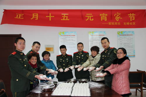 今年元宵节,七十多岁的热心大妈陆萍建议:“咱们包点汤圆送给军人吧,尤其是新兵,年龄小,基本上都是独子,他们肯定想家。”于是她们请来了驻区边防武警战士齐聚一堂,洗菜、剁馅、揉面,共同包汤圆。她们不时询问新兵的生活状况,介绍着扬州的民俗文化,让他们感受到扬州也是他们的家。