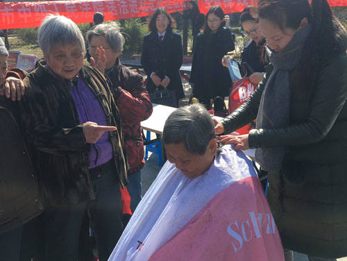 在现场,理发志愿者小陈用了不到20分钟的时间,就帮居民赵奶奶免费理完了发。“在家门口就把头发理了,方便!”赵奶奶高兴地说。这边理发热火朝天,那边提供义诊服务的东方医院志愿者也忙得不可开交。不一会,东方医院志愿者们就为20多位社区居民提供了义诊及健康咨询。由市中级人民法院提供的法律援助服务也备受欢迎。