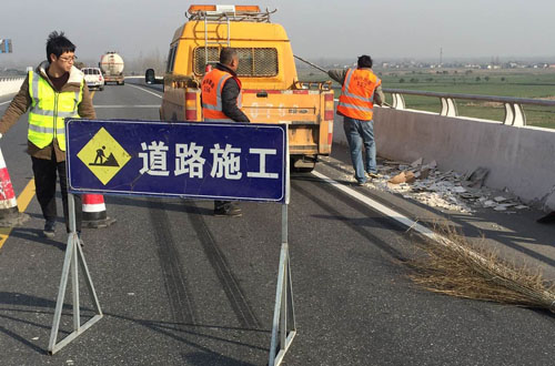 3月3日下午,微风拂过,阳光正好,宝应公路站养护股工作人员在日常巡查至264省道宝射河大桥时,发现桥面K120+200下行线有瓷砖堆积,存在安全隐患。针对此情况,工作人员一方面将制式车辆打开警灯,停在瓷砖后方,警示后方车辆;另一方面立即通知养护公司负责人,要求其立即安排养护人员对此处堆积物进行清理。