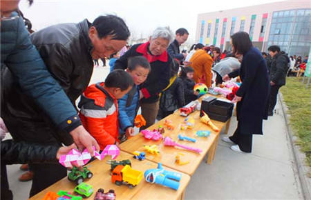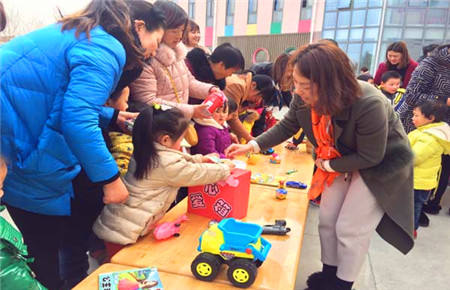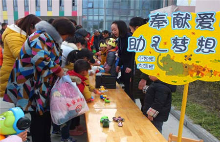 伴随着优美的音乐,义卖活动现场,人头攒动,热闹非凡。以班级为单位的摊位上,不仅有幼儿为奉献爱心而捐赠的精美物品,更有巾帼志愿者们精心策划设计的广告语和宣传海报,此起彼伏的叫卖声、欢乐声,交汇出一曲生动的校园爱心之歌。瞧!小小售货员们,通过吆喝、唱歌等方式,尽力兜售自己的商品。孩子们牵着家长,精心选购了自己喜欢的物品,并把钱投递到爱心箱内,还获得了老师奖励的笑脸徽章。一个个玩具、学习用品等义卖物换化成了爱心箱中沉甸甸的爱心善款。此次爱心义卖所筹善款将全部捐赠给园内贫困家庭的孩子们。