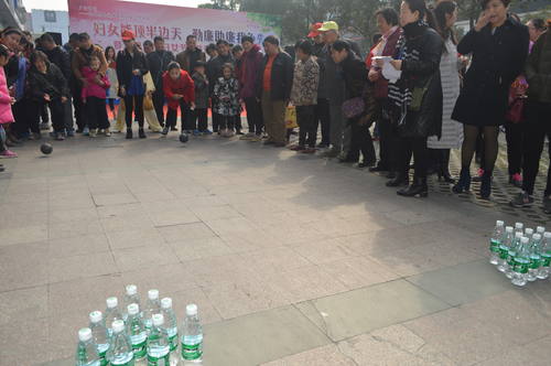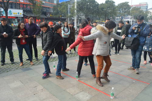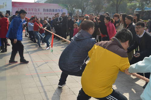 活动现场,“加油、加油”的呐喊声、欢呼声加上阵阵笑声,不时从凯德广场前传出,运动会在虹桥社区新成员健康快乐拳社的舞蹈中拉开了帷幕。此次运动会共设有拔河、夹球、趣味保龄球、抢凳子、吹气球五个比赛项目,参赛单位有虹桥社区、扬州市农村商业银行念四支行、江苏银行、凯德广场、扬大、沃尔玛超市6支代表队、200余名居民其中有10多位回族居民参与,大家不分年龄一起参与了本次运动会各个项目的互动比拼。其间不时有廉政知识、妇女维权知识抢答,现场的气氛推向了另一个高潮。老少同趣,居民同乐,处处都是欢声笑语。有的居民还拿出手机、相机,饶有兴致地拍摄比赛的精彩瞬间。