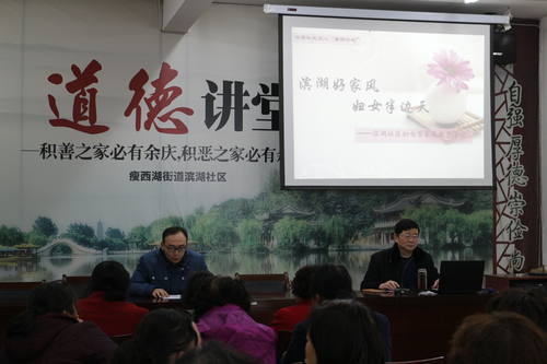3月6日下午两点,滨湖社区党支部、工会特邀请扬州大学教授吴林斌为社区女性党员、妇女代表等带来《注重家教家风,建设幸福家庭》的专题讲座。讲座开始前,吴教授为现场的每人发放了一本《弟子规》,从《弟子规》中的“孝、悌、谨、信、爱、亲仁、学文”引出家规,进而引入家风教育。吴教授从“家教与家风”和“家人与家庭”两方面论述了良好的家风对子女成长、家庭和睦、社会进步的促进作用。社区杨大妈讲到:“听了吴教授的讲座,我才发现自己在教育子女、孙儿中的一些错误观点,意识到自己在家庭建设中的重要作用,接下来我要回去好好和家人研究吴教授送的《弟子规》,争取让儿成龙、女成凤。”