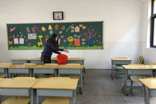 学校组织全校师生进行大扫除,总务处统一购买消毒用品,安排经过消毒培训的人员在学生放学清场后,对教室、办公室、会议室、走廊楼道、食堂等场所进行全面喷洒消毒,逐一检查,不留死角,不留盲区。