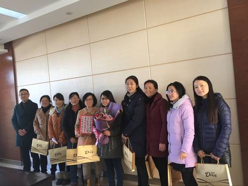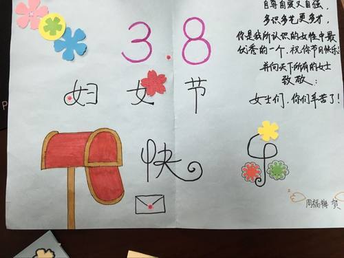 清早,通过抽奖形式,每位女教师收到了同伴们亲手制作的祝福贺卡及校长亲手书写的节日祝福:“春回甘小芳草茵,三月红妆分外新。满腔师爱传学子,只为甘泉润童心。”刘校长还代表全校师生为抽到特等奖的女教师赠送了鲜花。一张张精美的贺卡给大家送去了真挚的祝福。学生们良好的表现,更使女老师们深感安慰。