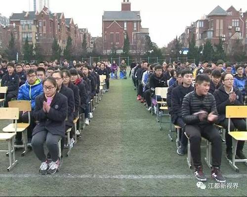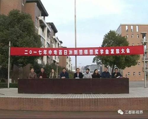 百日冲刺,青春无悔。2017年3月7日下午,在距中考百日之际,江都区国际学校九年级全体师生及家长,参加了2017年中考百日冲刺誓师暨奖学金发放大会,大会由刘念东副主任主持。