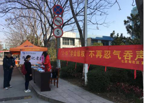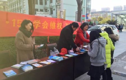 3月15日是消费者权益日,为了给辖区内职大学生创造一个诚信和谐、安全放心的消费环境,七里甸社区走进职大校园,开展“学会维权!不再忍气吞声”为主题的“315维权”宣传活动。