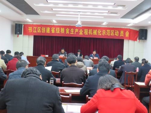 活动结束后,创建粮食生产全程机械化示范区动员部署会议在杨寿镇五楼会议室召开,会上邗江区水利局柴局长通报了全区粮食生产全程机械化创建情况,2017年创建粮食生产全程机械化乡镇杨寿镇、方巷镇、高新区进行交流发言。会议最后,贺区长提出三点意见,要求创建乡镇努力确保全程机械化示范区活动取得实效。