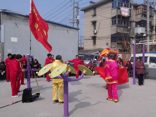 活动现场,不管是参加表演的演员,还是观众,个个都喜气洋洋。“旱船”表演人气最旺,“船娘子”立于旱船中,走快速碎步,“艄公”划桨引船,在前头带路,做出各种各样的划船动作。80多岁的李奶奶说:“这旱船还是我年轻时赶庙会时看的,几十年不看喽!”小孩子们更是欢快,有的三五成群搬着小凳子坐在边上,有的调皮地在人群中绕来绕去,说笑打闹,在初春的阳光中感受传统文化的魅力。