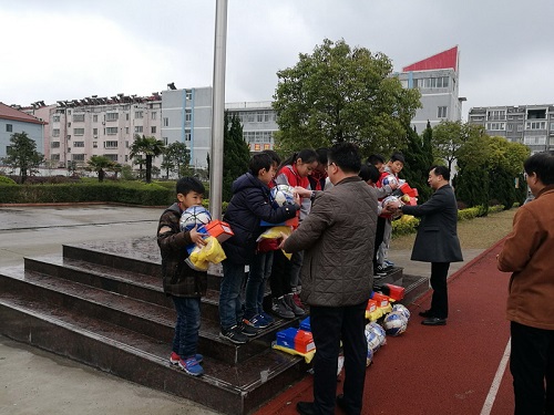 3月23日上午,浦头镇镇长袁士军、人大副主席沈峰来到浦头小学,向在扬州市2017年阳光体育“市长杯”青少年校园足球赛(小学组)中取得优异成绩的学校足球队员进行了表扬,并奖励每个队员一个足球、一双足球鞋、一套足球服。