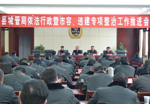 3月23日下午,为进一步强化城管队伍依法行政水平,扎实推进2017年度宝应县城市环境综合整治活动,营造良好的城市环境,全面提升宝应县对外形象,宝应县城管局召开依法行政暨市容、违建专项整治推进会。城管局领导班子成员,机关科室主要负责人,下属基层单位相关负责人及有关人员参加了会议。
