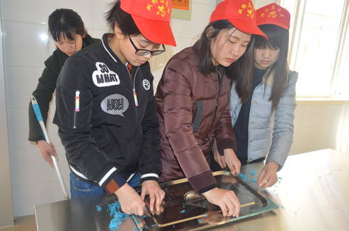 一到社区,志愿者们就热火朝天的行动起来,在服务中心杨庆国的指导下,纷纷开始打扫厨房。有的人扫地;有的在撕厨具上的保护膜;也有一些人在擦瓷砖,清理小区卫生等等。同学们都踊跃参与,积极投身于这次的实践活动,活动还吸引了三位回民志愿者参与,真是“一方缺人,八方支援”,志愿者们边打扫边聊天,说说笑笑,体会劳动的喜悦,交流劳动的心得。