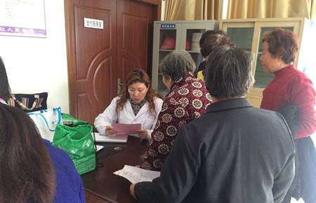 前来问诊的居民先在工作人员的引导下填写好基本情况登记表,再进行视力测试、白内障检查,医生为有白内障倾向的居民讲解了有关白内障病因、症状表现、治疗方法、预防知识等。