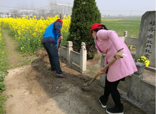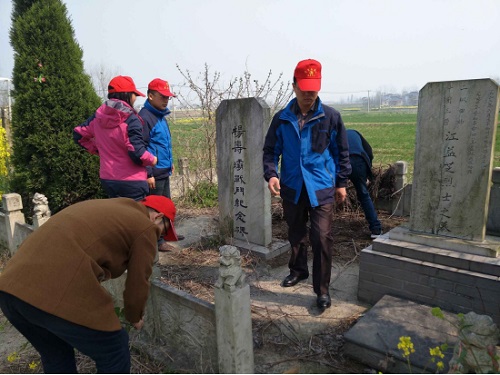清明节将至,为缅怀革命先烈,弘扬爱国主义精神,4月1日上午,杨寿社区组织党员志愿者前往位于爱国村的江益芝烈士墓进行文明祭扫活动。