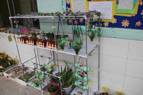 此次评比中,每个班级充分利用泡沫板、塑料框、轮胎等废旧物品通过孩子和老师的手变成一件件艺术品。孩子和教师除了一起动手种植小麦、大蒜、土豆等常见的植物之外,家长也主动带植物到幼儿园来,方便幼儿认识各种各样的植物,拓展视野。大棚种植、测量柱、种子发芽试验区等小区域深深的吸引了孩子们的注意力,极大的调动了孩子主动观察、科学探索的积极性,孩子在一次次观察、一次次记录中不断获得直接经验,学会记录方法。