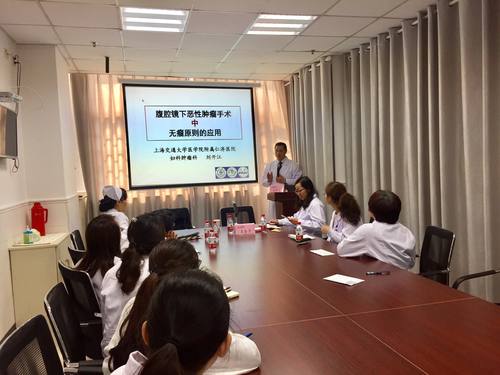 活动上,刘开江教授以“腹腔镜下恶性肿瘤手术中无瘤原则的应用”为主题进行了学术小讲座,刘教授通过图文并茂的讲解,把腹腔镜下行恶性肿瘤微创手术的无瘤原则,以及肿瘤治疗的微创化、人性化、规范化、个体化等理念一一介绍给在场人员。他始终坚持“精准化、无瘤化”的理念,强调只有手术更精准,病人才会更安全,这样才能体现“人性化”的服务理念。刘教授毫无保留地传授经验,使在场人员感到受益匪浅。