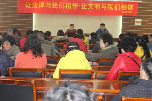 近日,双桥街道石桥社区为居民上了一堂以“法律与我们相伴、让文明与我们相依”为主题的法制课。本次活动,社区特别邀请了扬大法学系刘教授为广大居民普及法制知识,以进一步提高居民的法律意识,引导居民利用法律武器维护自身的合法权益。