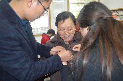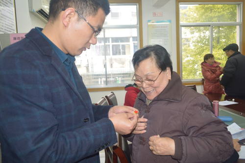 党徽是党的象征,是党员身份的标识。4月11日下午,虹桥社区党总支组织党员中心户开展把党徽戴起来、把身份亮出来活动,党总支书记范乃成亲自为老党员们佩戴党徽,党徽既是党员形象的具体反映,更是时刻提醒共产党人不忘责任、不负初心。党员纷纷表示: 既然是共产党员,佩戴着党章,我们肩负的责任就与普通群众不一般,就要以“合格党员”的标准严格要求自己,廉洁自律,自觉接受群众监督,事事当先锋、做表率,做到“平常时候看得出来、关键时刻站得出来、危急关头豁得出来”,彰显共产党员的担当,不负共产党员的称号。