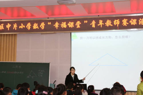 本次赛课采取同课异构的形式,围绕苏教版四年级数学下册中的“图形与几何”这一内容,6个学校的6名竞技者,分上下午两场,同台演绎《认识三角形》一课。经典的教学内容,不同的教学演绎,体现了六位选手各自对数学课堂及新版教材的理解与掌控。选手们精心预设、智慧驾驭;课堂上师生思维碰撞、情感融合,焕发出生命的活力,给评委和听课老师留下了深刻的印象。 此次赛课为青年教师提供了展示的舞台,选手们在激烈角逐中尽显了各自的业务素养。