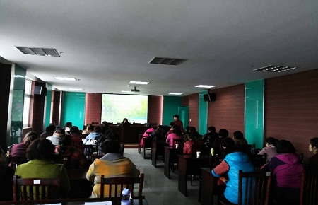 2017年邗江区妇女宫颈癌、乳腺癌(以下简称“两癌”)筛查项目工作陆续启动。为了进一步提高育龄群众自我保健意识,提高服务对象对“两癌”筛查防治知识的知晓率及参与筛查工作依从性,提升服务质量和工作效果,结合扬州市2017年四月“健康教育活动月”工作要求,4月7日上午,邗江区妇幼保健所妇女保健科在杨庙镇组织开展了《积极参加“两癌”筛查,守护女性生殖健康》的妇女生殖健康知识专题讲座活动。