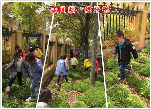 看,科学活动“拾落叶”、“找奇怪的叶子”让孩子们在找找比比中,丰富对植物的认识;体育活动“跳间隔”、“稳步走”,利用小草坪、数字格玩游戏还学会了爱护小花小草;绘画活动“画影子”、“我是小画家”,换个地方画画也很有趣;数学活动“衣领上的数字”,引导孩子们学会探索与自己息息相关的秘密……