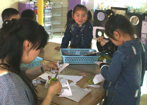4月18日,氾幼校园里来了一批家长志愿者,成为班级游戏组织的助力。
