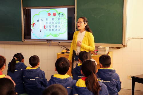 龙川小学的马飞老师、仙女镇教育集团的陈静老师分别执教了三年级的《对鲜花》、《八只小鹅》。