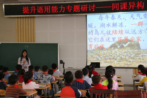 此次开课的是二年级的两位年轻教师。她们所执教的是经典课文《鸟岛》。两位老师精心准备,精彩演绎给听课老师留下了深刻的印象。张大平老师教学设计新颖,紧扣文本内容,抓住词语,精心设计提问,设计小练笔,努力提高学生理解和运用语言的能力。韩长娣老师善于创设情境,用富有感染力的语言,一下子就把学生带入了热闹的鸟岛,跟着孩子一起在鸟岛上游玩,整个课堂学生兴趣盎然。