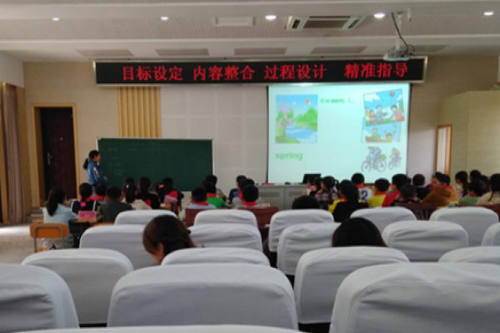 4月26日下午, 甘泉小学英语学科类母语教学范式研讨暨四年级句型教学研讨活动成功举行。 本次活动由陈颖和邵巍两位老师以同课异构的形式分别执教《Unit 5 Seasons》。邵巍老师经验丰富,在各种活动如诵读歌谣、歌曲操练、问答、填表格中反复操练句型;陈颖老师利用各种媒介(图片、多媒体、动作、表情和语调)巧妙地设置情景,通过视、听、说活动呈现句型,让学生感受其应用的场合和意义。