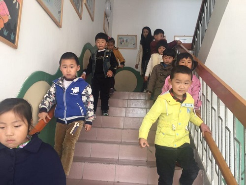 当警报拉响全园工作人员和幼儿能够在听到警铃后不慌乱,迅速听从指挥,有序退场,由班级老师带领沿疏散标志从就近安全出口撤离。一楼的小一班、小二班、小三班能够直接跑向校园,到指定位置集中。二楼三楼的中一班、中二班、大一、大二幼儿由西面楼梯下楼到校园指定点集中,中三大三班能由东面楼梯下楼到校园指定点集中。紧急疏散时的撤离秩序、安全管理达到了预期的效果,无楼道拥挤事故发生。转移到校园内集合整队并清点了人数。疏散引导小组能够维护疏散秩序,指明疏散方向和路径。在两处拐角处有人员引导,无幼儿逆向跑、窜、推撞、挤压情况发生,无踩踏事故发生。全体师幼都遵守就近安全出口撤离原则。
