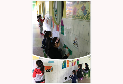 以礼仪特色这一园本课程位主线,教师们充分挖掘幼儿园公共环境的有限空间,在走廊开辟涂鸦区,鼓励孩子们根据自己的观察理解,用稚嫩的画笔描绘出自己眼中对周围环境、对礼仪教育的认识,“大马路上”、“春天里……”、“礼仪宝宝手拉手”等主题中,他们真正成为活动的主人,由此,也促使环境创设具有课程功能。