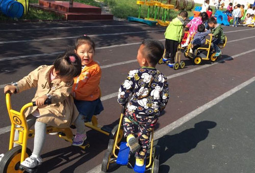 “运动、健康、快乐”是柳堡镇中心幼儿园的办园宗旨。为了深入贯彻《3-6岁儿童学习与发展指南》精神, 丰富幼儿的室外体育游戏活动,柳堡镇中心幼儿园在有限的活动经费中拿出一部分资金,添置了一些适合的年龄段的体育活动器械,现在,每到活动时间,孩子们都迫不及待地走出班级,丰富多彩的运动器具吸引幼儿主动参与体育活动,把游戏的权利真正交还给每个孩子!