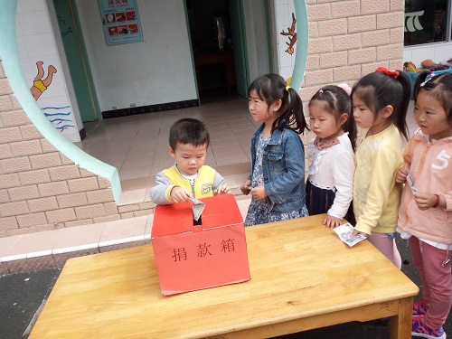 为了弘扬中华民族“扶贫济困、乐善好施”的传统美德。5月19日上午,在一曲温情的《爱的奉献》伴奏下,柳堡镇中心幼儿园隆重举行“慈善一日捐”活动。园长冯秀华进行了热情洋溢地讲话,她动员全园师幼伸出援助之手,献出关爱之情,为贫困地区的小朋友送上一份爱心。冯园长的话将活动气氛推向了高潮。在园领导的带领下全园教职工率先排起一条“爱心长龙”,有秩序地走向捐款箱,奉献爱心。紧接着,孩子们积极响应,按照先后次序,进行爱心接力,满心期盼的将写满爱心的纸币庄严地投入到捐款箱里,用真诚的心编织爱的网络,用诚挚的情表达温馨的祝愿。通过这次爱心捐款活动,不仅把与人为善的种子播撒在孩子们纯洁幼稚的心灵,也培养我们孩子的乐善好施,爱心善意的美好情感及高尚情操。慈善送温暖,爱心献社会,让我们共同携手,与爱同行,播散慈善的种子,撑起一片爱的天空! 用慈心善举,奏响柳堡镇中心幼儿园爱的赞歌!