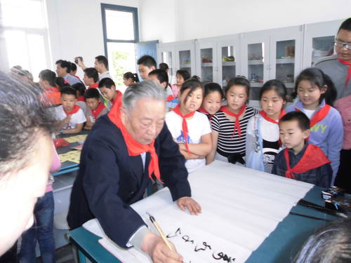 活动中,该校师生聆听了书法家朱洪林先生深入浅出、生动风趣的书法讲座,观赏了当地著名书画家赵仲和先生的诗词书画佳作及本校师生的优秀书法作品;孩子们朗诵了赵仲和、王步康两位老诗人创作的校园童谣;朱洪林先生和赵老先生同时挥毫泼墨,让师生们一饱眼福,深受启迪;该校少年宫书法社团的孩子们也作了汇报展示。